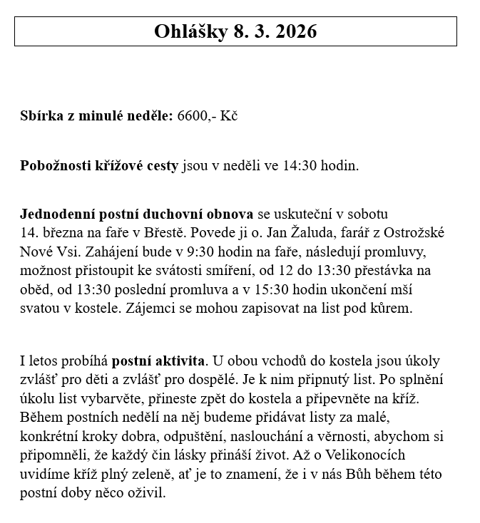 OHLÁŠKY BŘEST